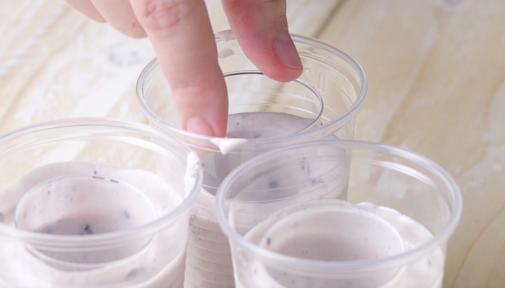 Stelle die Becher anschließend für 2 Stunden ins Tiefkühlfach.