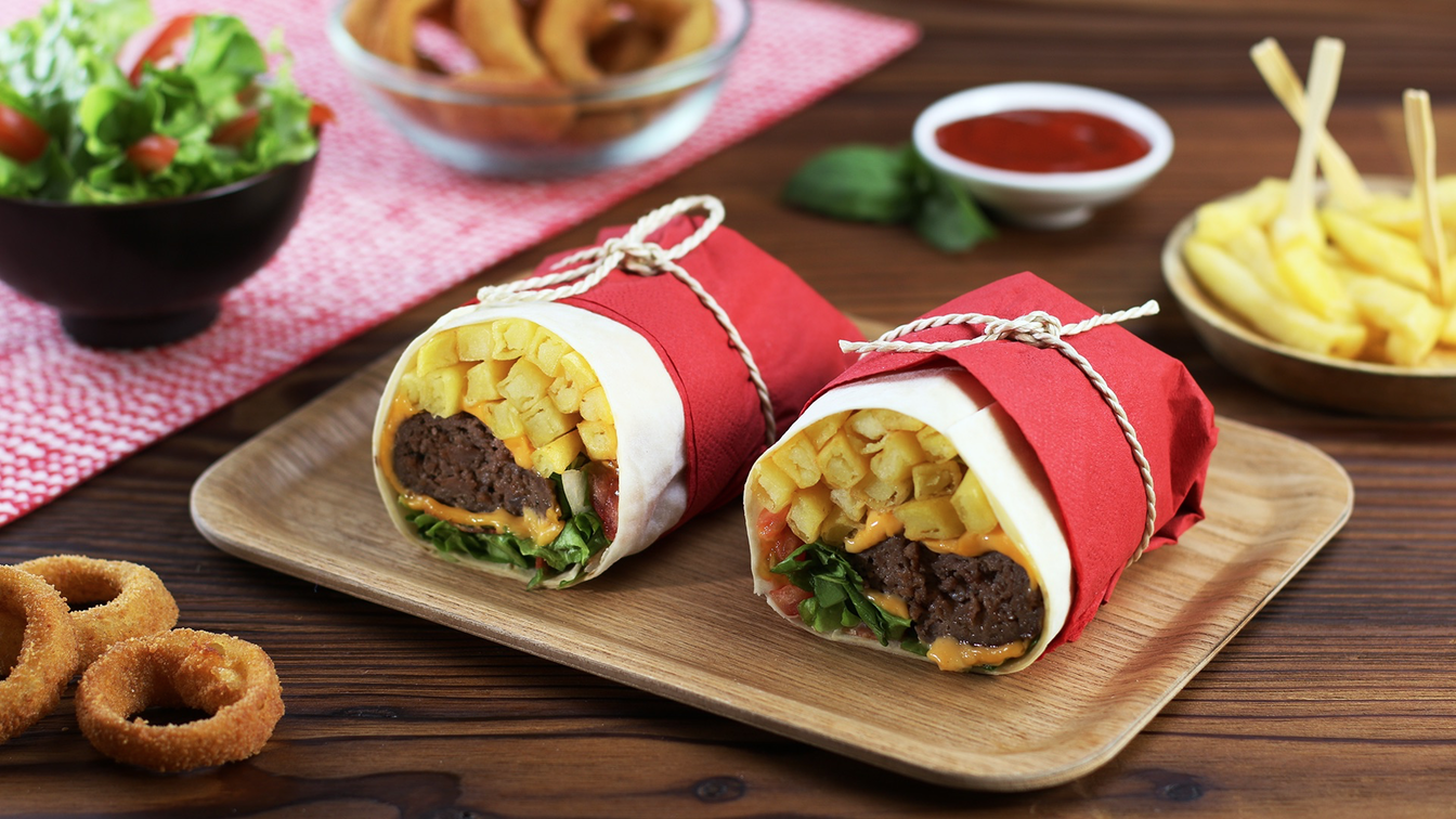 Einen Burger im Burrito-Mantel bietet dieses Rezept. Genial und lecker!