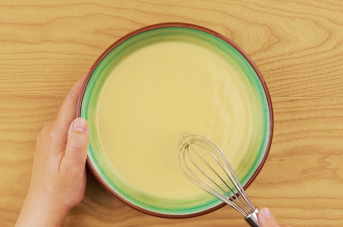 1.) Rühre Eier, Zucker und Mehl zu einem glatten Teig.