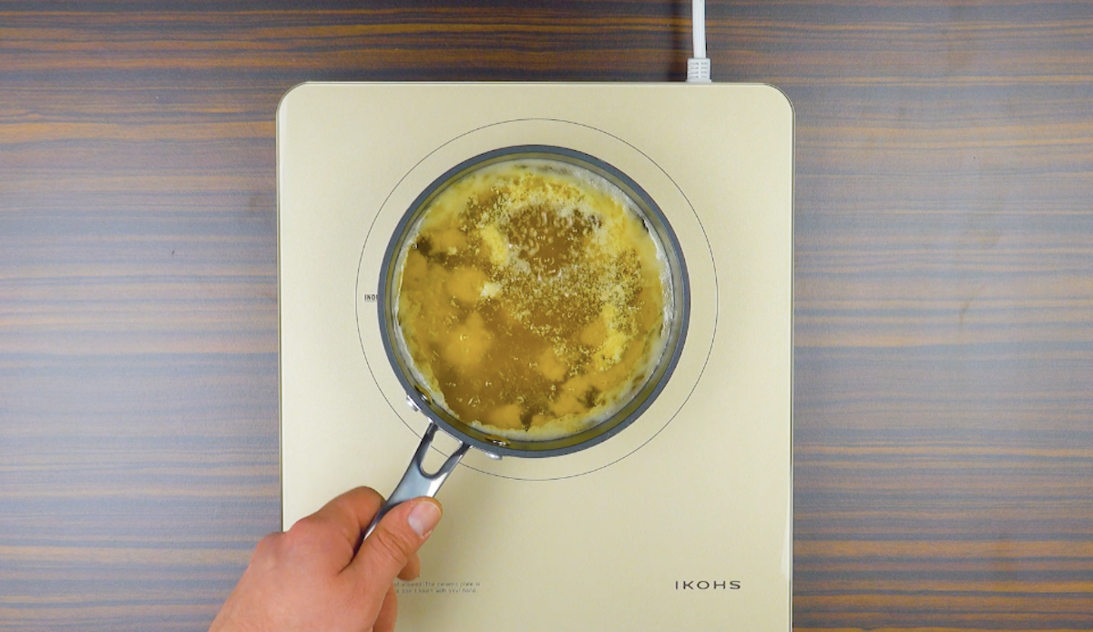1. Bringe Butter mit Honig in einem Topf zum Schmelzen. Stelle den Topf erst eimal beiseite und lasse alles etwas abkühlen.