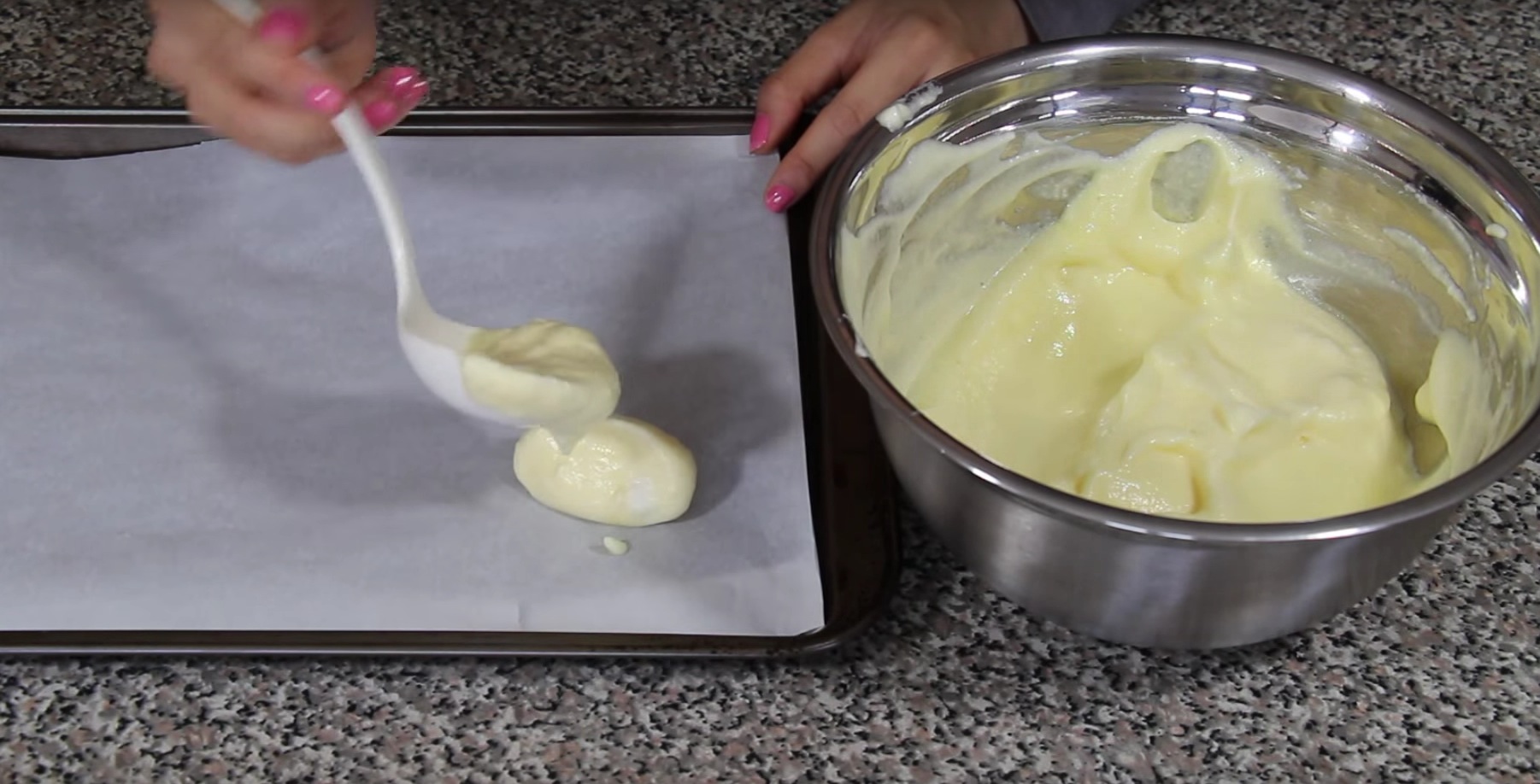 Auf ein Blech mit Backpapier setzt du dann 6-8 Kleckse der Masse.