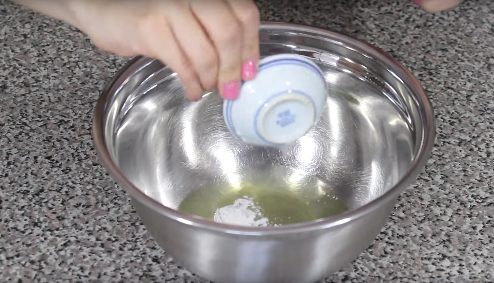 In eine große Rührschüssel kommt das Eiweiß sowie das Backpulver.