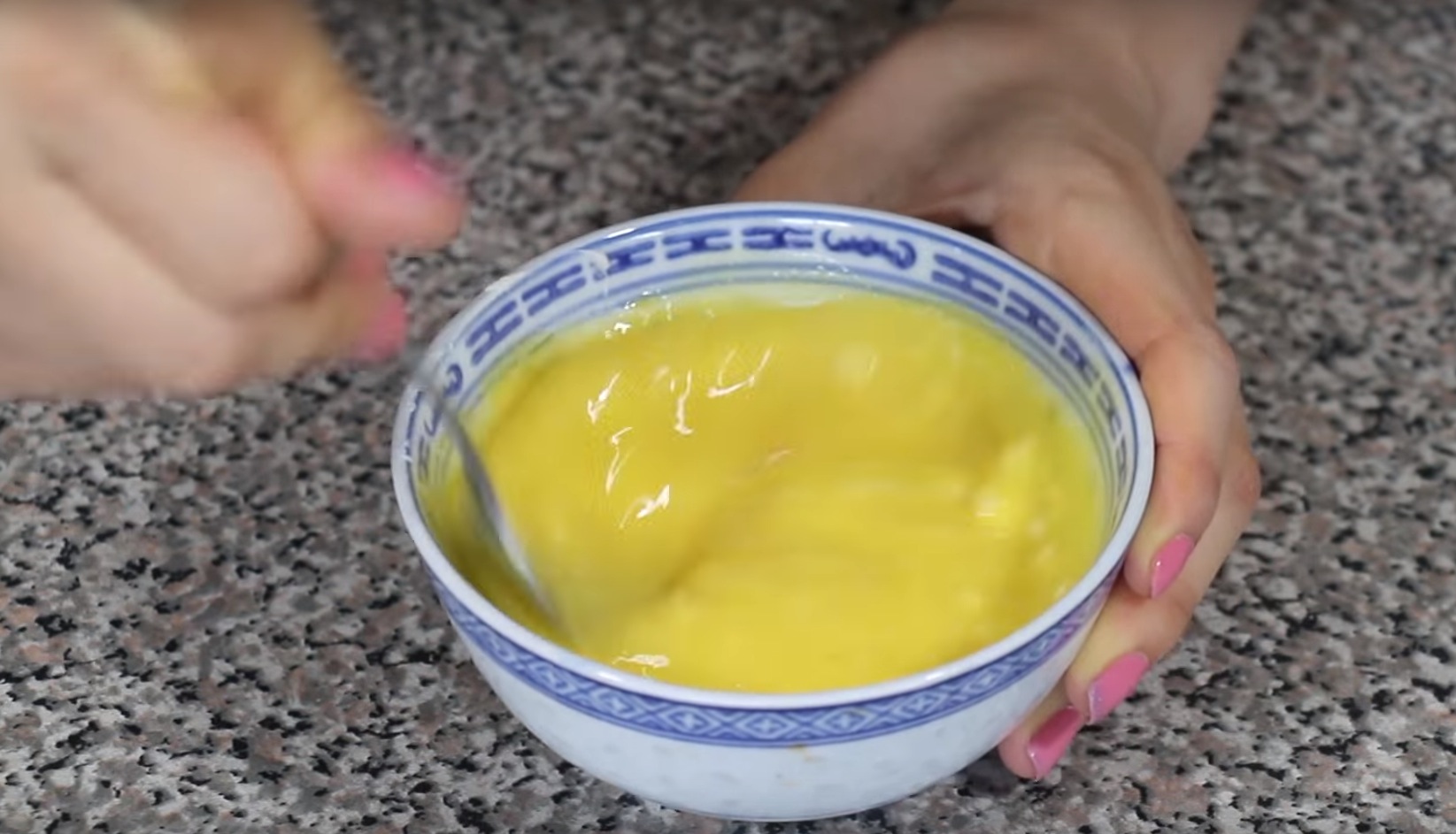 So wird es gemacht: Gib den Frischkäse und die Prise Zuckerersatz zu den 3 Eigelben.