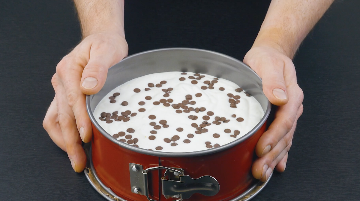 1. Gib Eiweiß, Vanillearoma und die Prise Salz in eine Schüssel und fange an, alles mit einem Handrührgerät aufzuschlagen. Lasse nach und nach Zucker einrieseln, bis die Masse schön glänzt. Das sollte nach etwa 5 Minuten der Fall sein. Füge dann Öl, Milch und Abrieb der Orangen hinzu und verrühre alles weiter. Zum Schluss siebst du das Mehl hinein. Fülle den Teig danach in die Springform und streue noch Schokoladendrops hinein. Klopfe leicht mit der Kuchenform auf die Arbeitsfläche, damit die Luft aus dem Teig entweicht und er sich schön gleichmäßig in der Form verteilt. Schiebe die Kuchenform für 35 Minuten bei 170 °C Ober- und Unterhitze in den Ofen. Lasse den Kuchen danach für eine Stunde auskühlen.