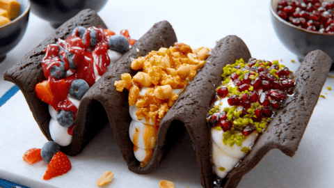- Fülle die Oreo-Creme in die Oreo-Welle und garniere sie nach Belieben mit frischen Früchten, Nüssen, Bonbons und Saucen.