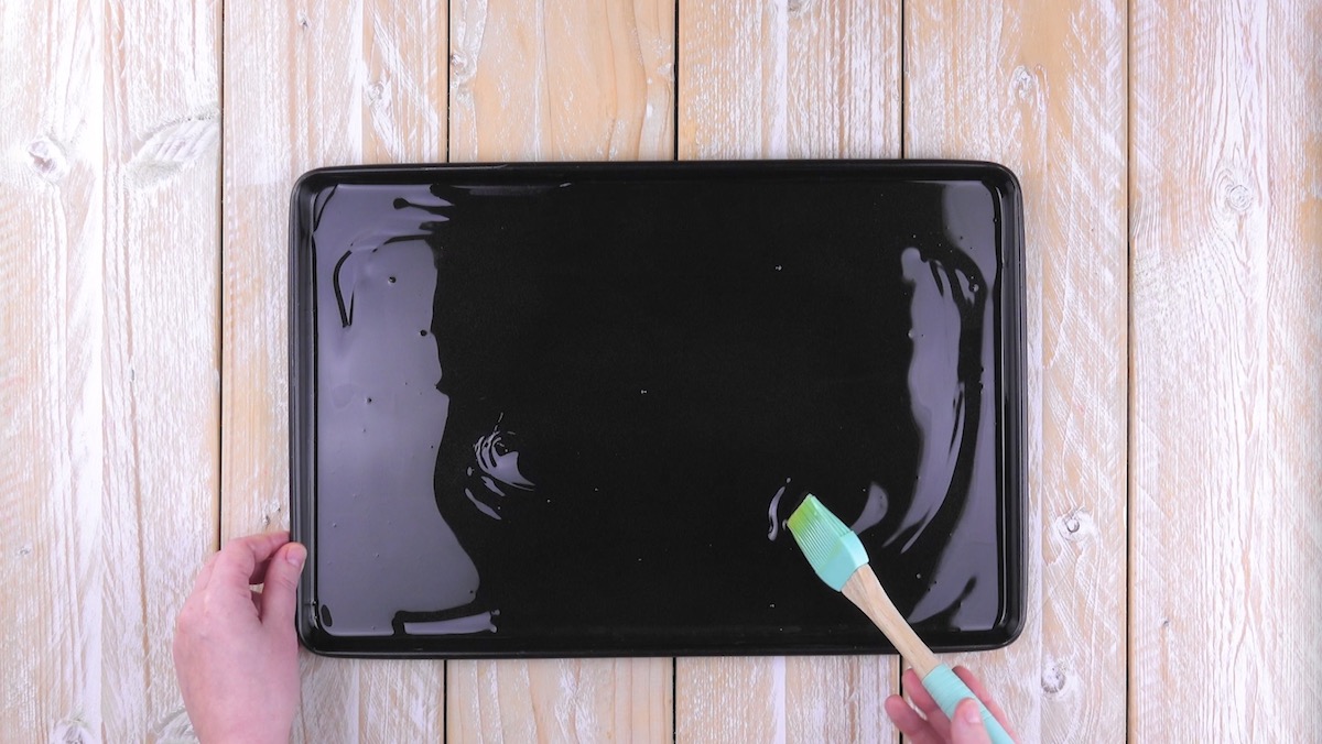 2.) Schmilz die Butter und bestreiche mit ihr das Backblech.