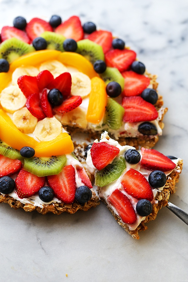 Darin sind sich viele Menschen einig: Pizza schmeckt warm und kalt – und es darf schon mal die alte Pizza von gestern Abend zum Frühstück geben. Falls das nicht so dein Fall ist oder du Lust auf eine ganz andere Art von Pizza hast, könnte dich diese rundum gesunde Obstpizza mit Frischkäse und Müsli begeistern.