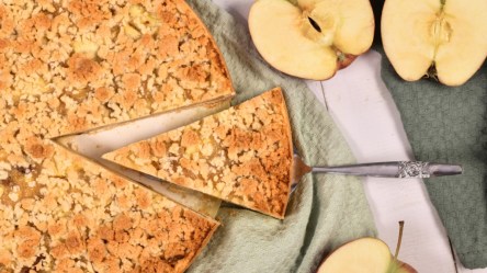 Nimm den Apfelmus-Streuselkuchen aus dem Ofen und lass ihn abkühlen, bevor du ihn in Stücke schneidest und servierst.