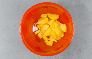 Koche zunächst die Kartoffeln. Wenn du sie vorher rundherum mit einem Messer leicht einschneidest, geht die Pelle nach dem Kochen wunderbar ab. Schneide die Kartoffeln danach klein und gib sie in eine Schüssel.