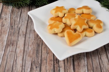 Rolle den Teig auf einer leicht bemehlten Arbeitsfläche etwa 5 mm dick aus. Verwende Ausstechformen deiner Wahl (z. B. Herzen, Sterne, Blumen), um die Mailänderli auszustechen.