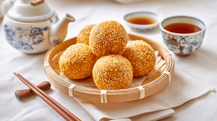 Befeuchte die Bällchen mit etwas Wasser und wälze sie dann in den Sesamsamen, bis sie vollständig bedeckt sind. Drücke sie dabei leicht an.