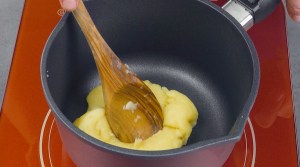 Vermenge nun die Stampfkartoffeln mit dem Brandteig und fülle die Masse in einen Spritzbeutel.