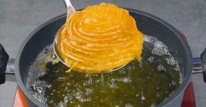 Frittiere die Stampfkartoffelwürstchen anschließend ebenfalls für 2-3 Minuten, bis sie goldbraun sind.