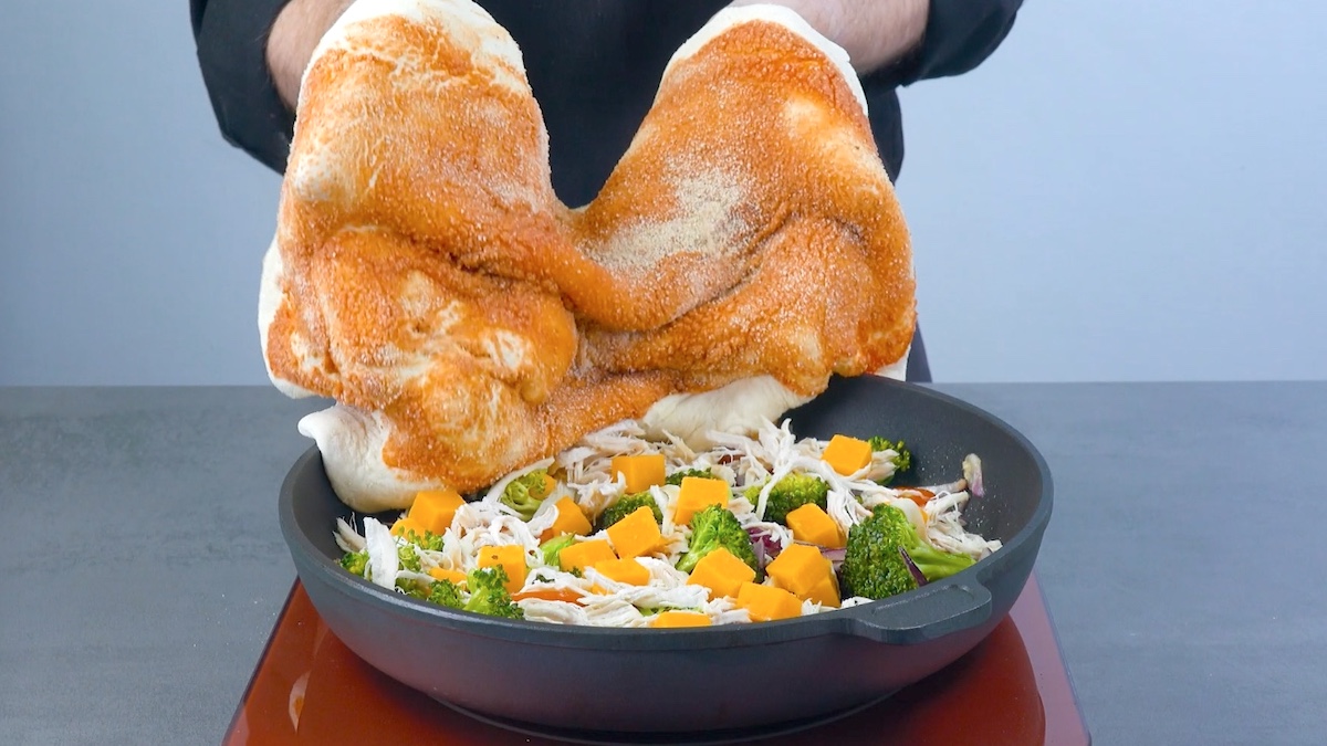 Wir zeigen dir, wie du eine ganz außergewöhnliche Pizza selber machen kannst, und das mit Frischekick! Denn cremiger Joghurt und saftiges Pulled Chicken verleihen dieser Pizza einen außerordentlichen Geschmack!