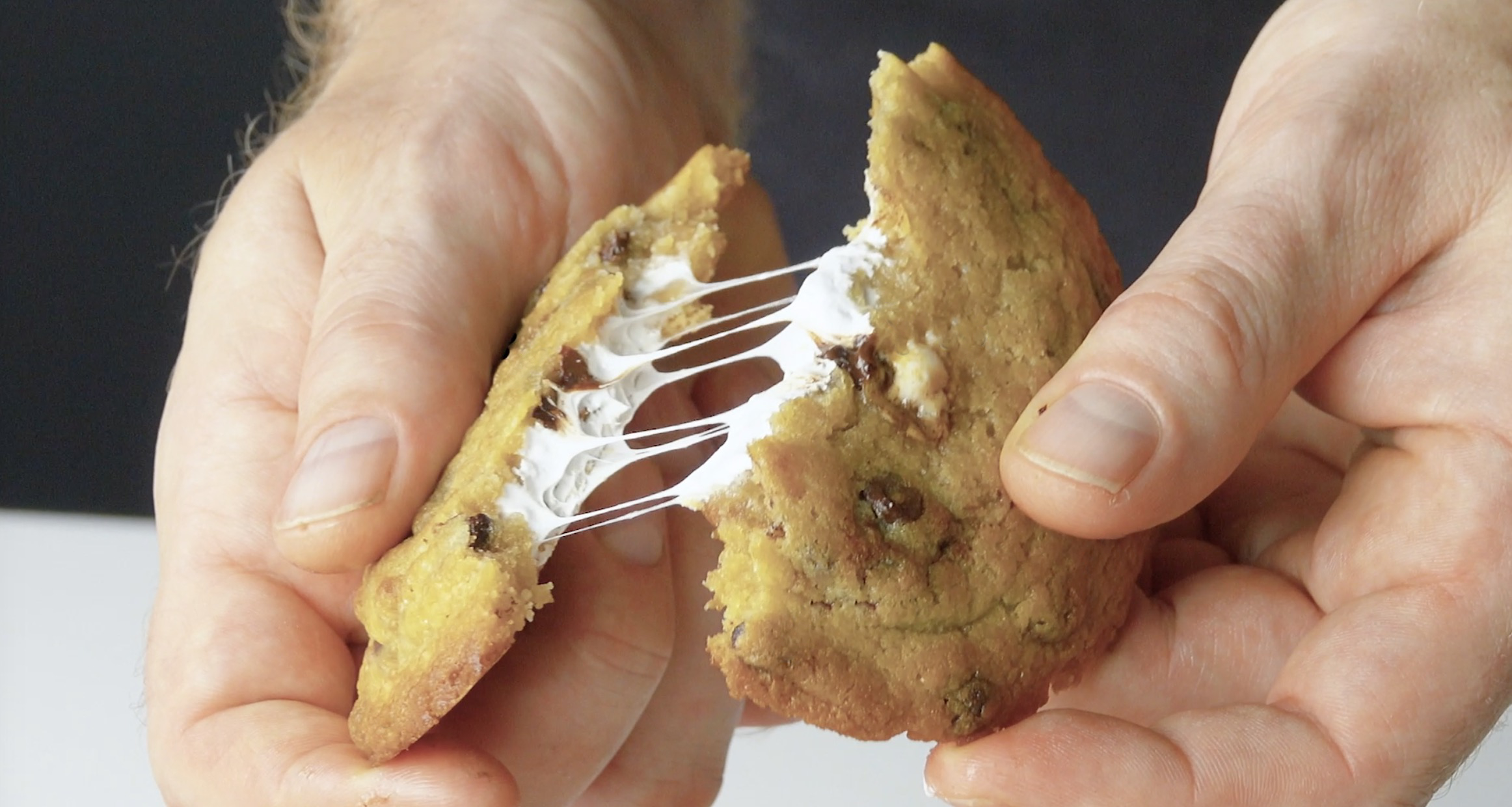 4.2) Schiebe das Ganze in den Herd und backe es für 10 Minuten bei 180 °C Ober-/Unterhitze. Währenddessen zerfließt nicht nur der Keksteig, sondern auch die Schokotafeln und Marshmallows schmelzen – so entsteht ein schokoladig-cremiger Cookie, der alle anderen Kekse in den Schatten stellt.