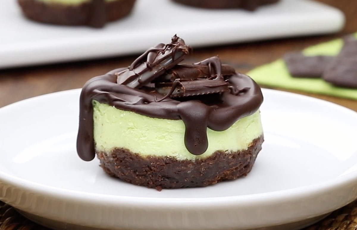 Käsekuchen ist ein echter Klassiker, doch allzu oft gibt es ihn in der gleichen Art, manchmal vielleicht noch mit Rosinen oder Mandarinen belegt. Bei Käsekuchen scheinen die meisten Backkünstler nicht sehr mutig zu sein. Dabei gibt es so tolle Käsekuchen-Varianten, die ein völlig neues Geschmackserlebnis garantieren. So zum Beispiel dieser großartige Schoko-Minz-Käsekuchen im handlichen Format. So hast du diesen Kuchen garantiert noch nie genossen.
