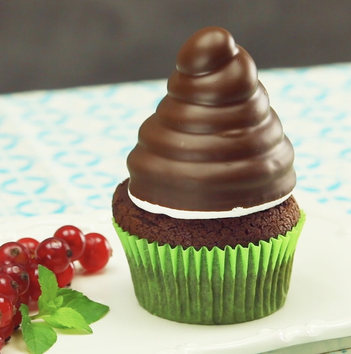 Die Wahl zwischen fluffigem Schokokuss oder niedlichem Muffin kann sehr schwerfallen. Beides zusammen passt aber leider nicht in den Mund – bisher zumindest. Bei diesen schokoladigen Muffins bleibt die Qual der Wahl außen vor, denn obenauf sitzt ein Hut aus zuckersüßer Buttercreme, die luftig-locker geschlagen wurde. Nun musst du nur noch einmal ganz groß „Aaah“ sagen.