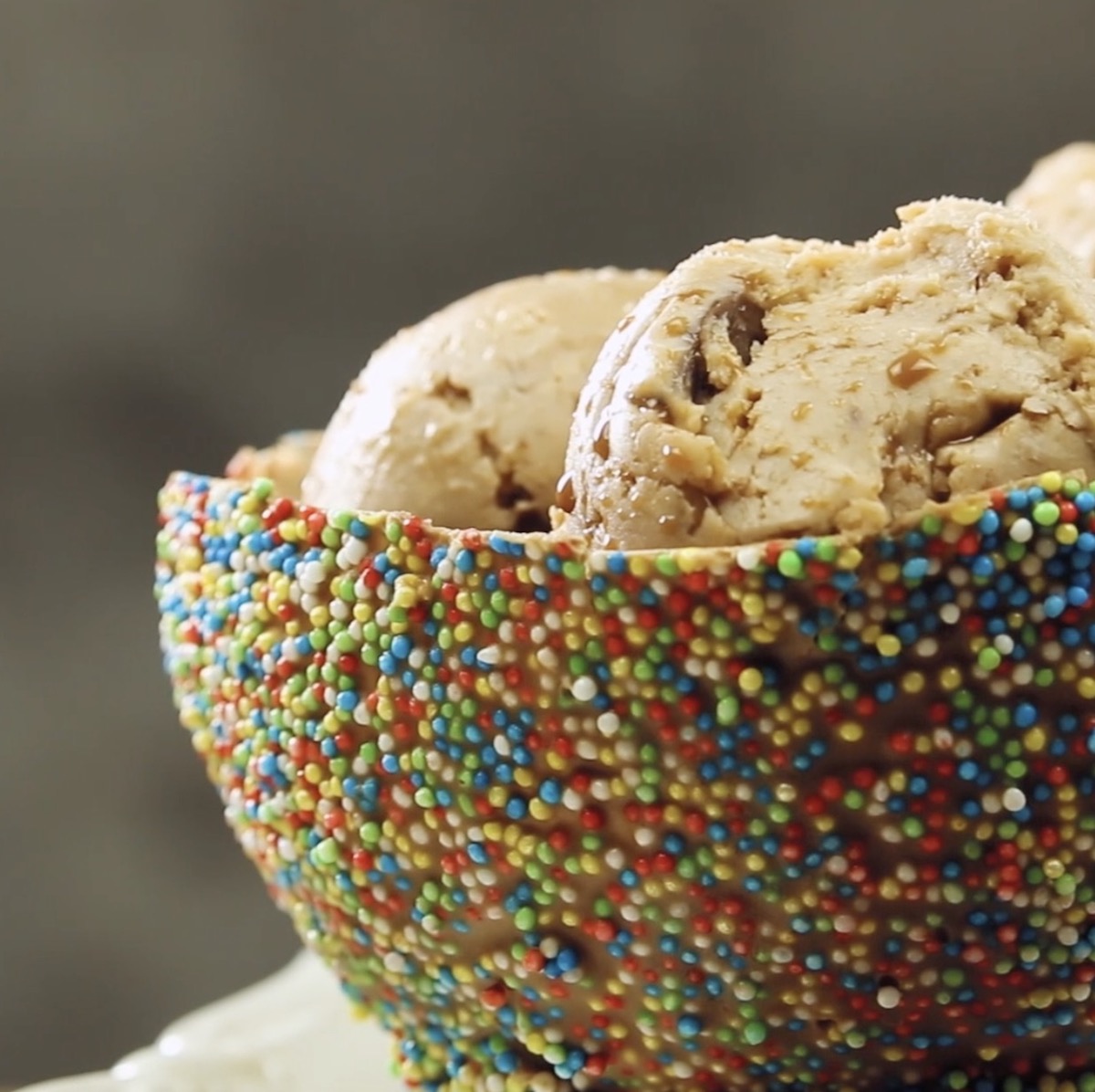 3.) Eiscreme aus „kinder Riegeln“ im Schokoschälchen Manchmal hat man mehr Glück, als man für möglich hält. So ähnlich ist es mit dieser süßen Leckerei: Als würde die selbstgezauberte Eiscreme aus „kinder Riegeln“ nicht schon allein überzeugen, nein, sie wird auch noch in einem superwitzigen Schokoschälchen serviert. Und auch das ist selbstverständlich von Hand gemacht. Eine doppelte Portion Glück sozusagen.