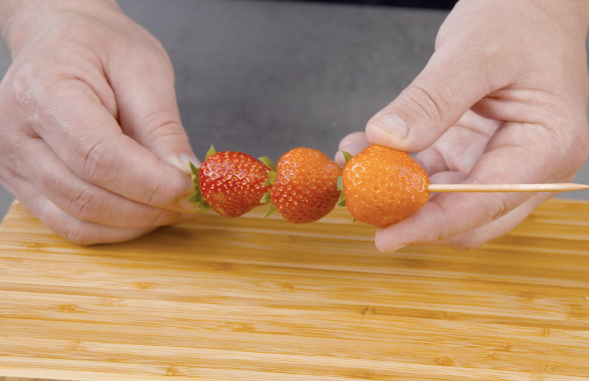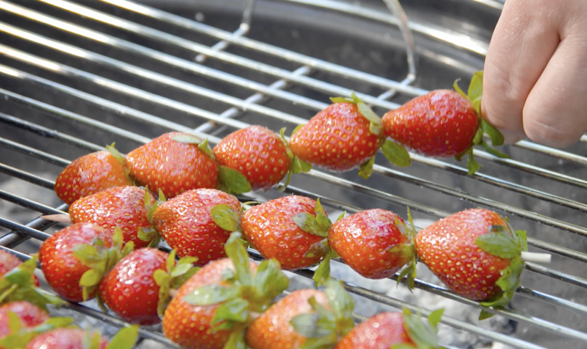 6. Grille die Erdbeerspieße ca. 2 Minuten von jeder Seite.