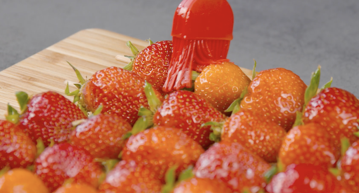5. Bestreiche die Erdbeeren nun von allen Seiten mit der Honigbutter.