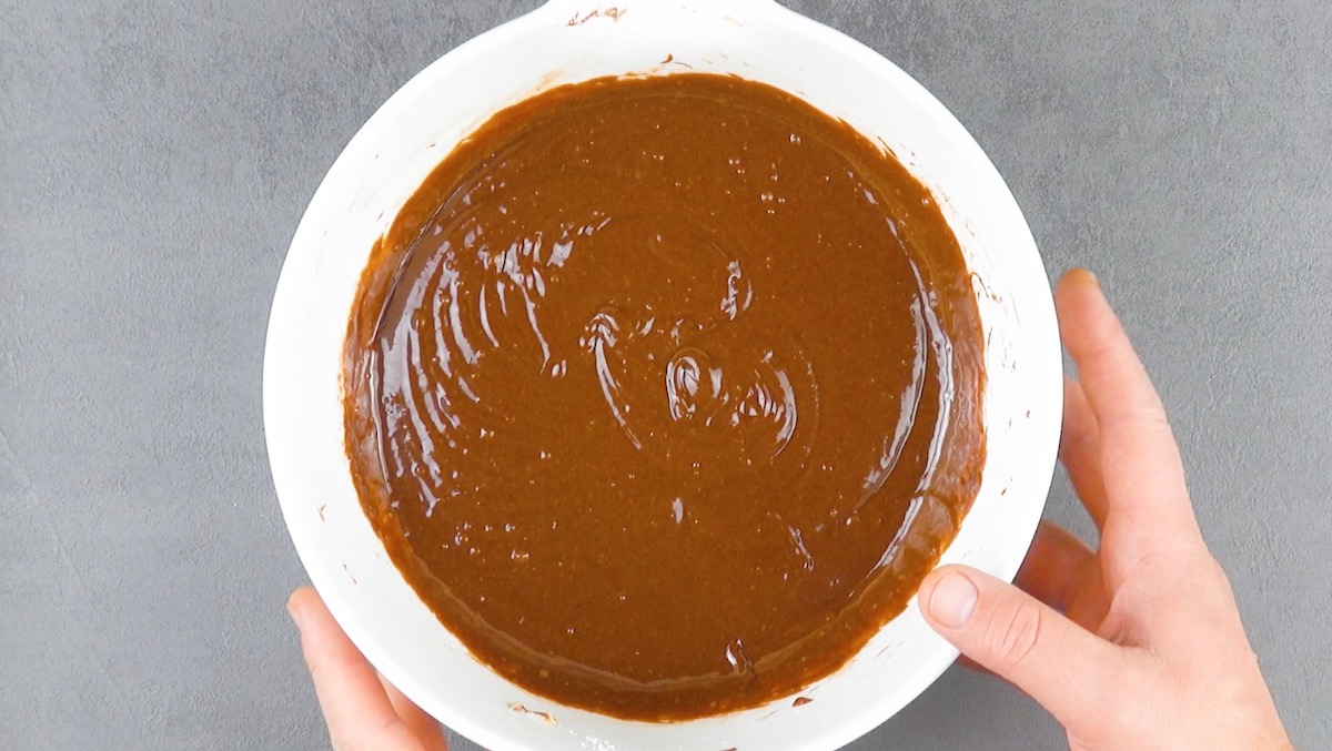 5. Backe den Schokoladenkuchen für 20 Minuten bei 180 °C Ober-/Unterhitze.