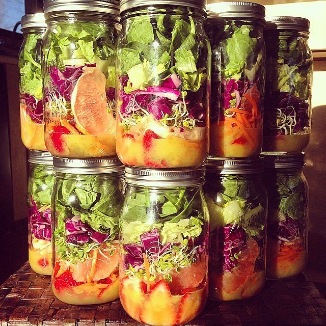 Mit dem Salat im Einmachglas garantierst du dir deine tägliche Dosis Vitamine und sparst außerdem jede Menge Zeit. Und auch wenn du 5 Gläser auf einmal vorbereitest, kannst du mit verschiedenen Dressings und Gemüsesorten für tägliche Abwechslung beim Mittagessen sorgen.