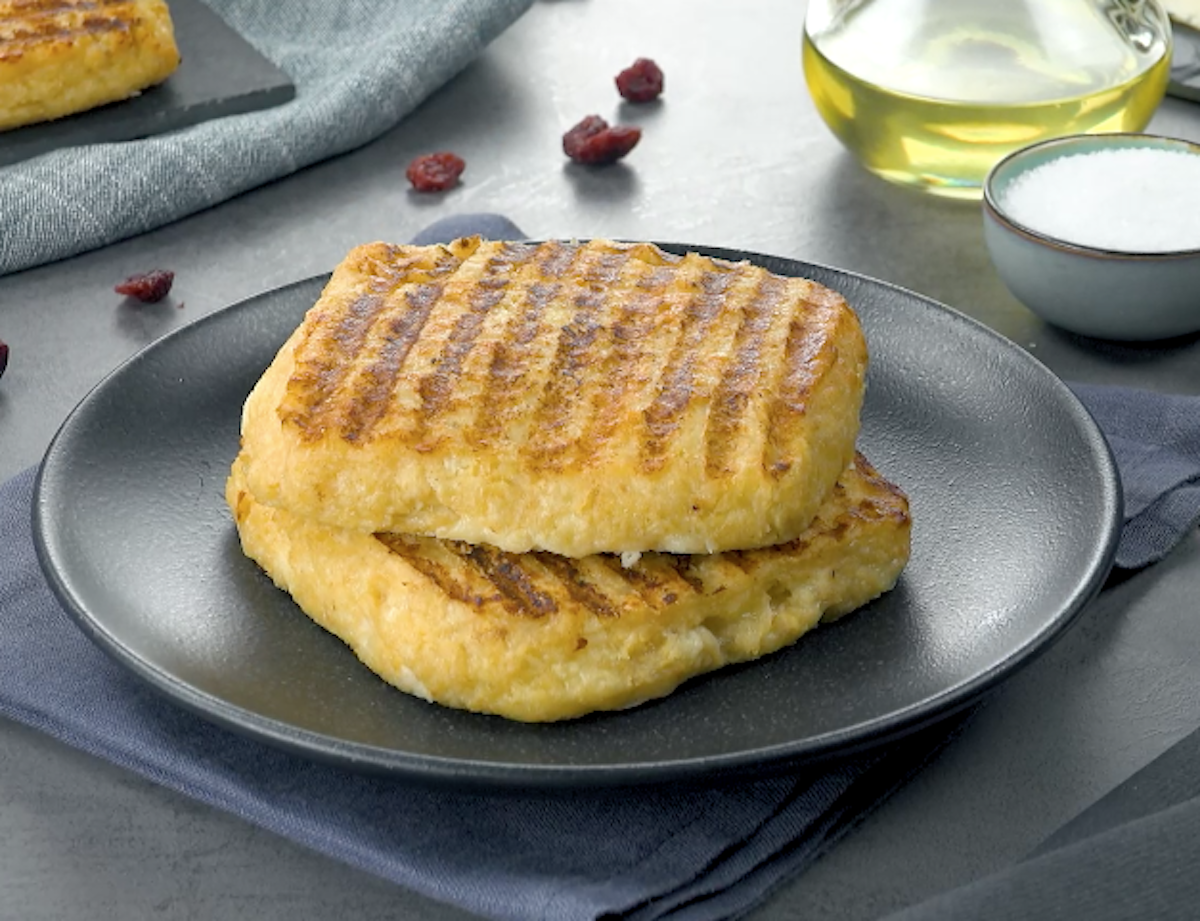 3.3 Gib die Sandwiches in eine beschichtete Pfanne mit Öl und backe sie bei mittlerer Hitze von beiden Seiten aus. Lasse die Sandwiches bei geschlossenem Deckel ca. 5 bis 7 Minuten garen.