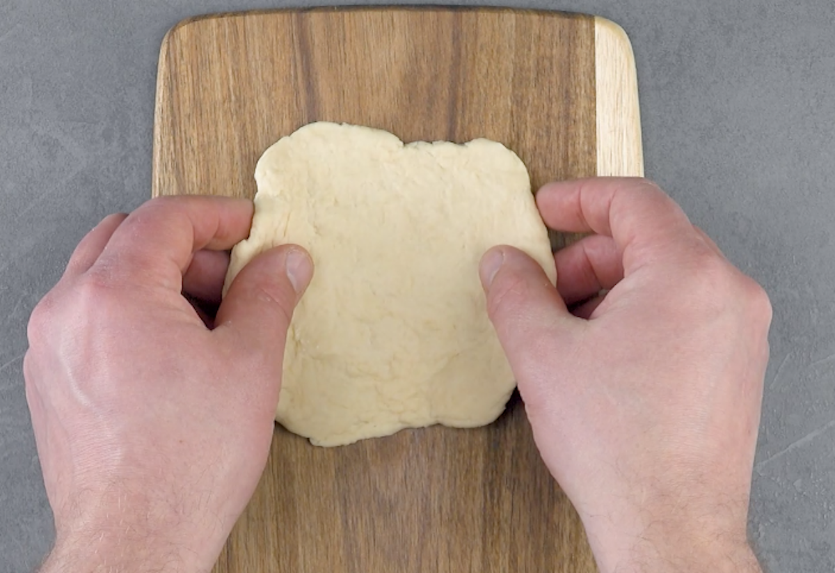 2.3 Lege ein weiteres Kartoffel-Rechteck obendrauf und verschließe die Seiten.