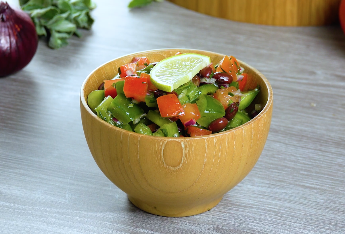 So geht es: Vermenge zunächst alle Zutaten für das Dressing. Schneide anschließend Paprika, Zwiebel sowie Tomaten klein und gib alles in eine Schüssel. Hacke außerdem den Koriander und den Oregano klein und füge sie dem Rest hinzu. Zum Schluss kommen noch die Kidneybohnen in die Schüssel. Gib noch das Dressing hinzu – fertig ist der frische Paprika-Salat.