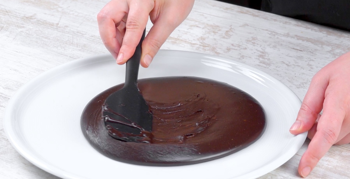 2. Erhitze währenddessen für die Brigadeiros Kondensmilch, Butter und Kakao in einem Topf und lass die Masse so lange köcheln, bis sie zähflüssig ist. Verteile sie dann auf einem Teller und stelle sie für eine Stunde im Kühlschrank kalt.