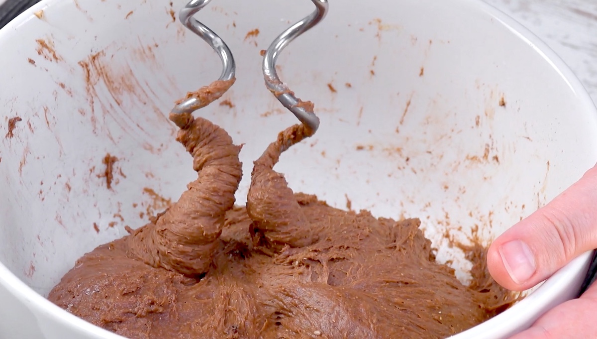 1. Verrühre als Erstes alle Zutaten für den schokoladigen Hefeteig miteinander und lass diesen dann für 90 Minuten abgedeckt gehen.