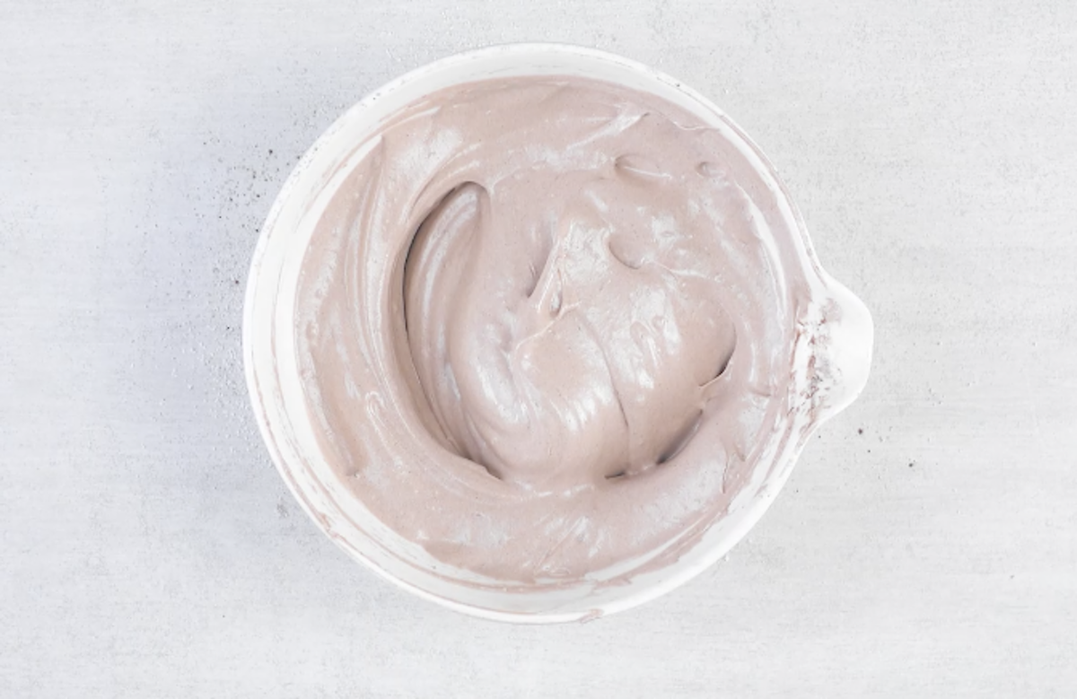 6. Für die Schokocreme schlägst du Butter, Kakao und Puderzucker mit einem Handrührgerät schaumig auf.