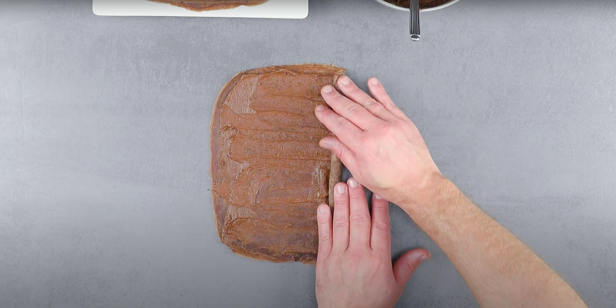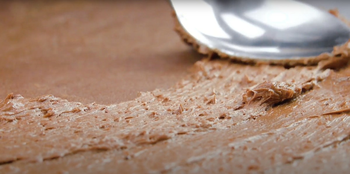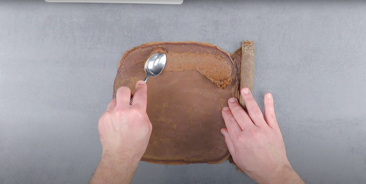 6. Bestreiche den Crêpe gleichmäßig mit der Schokoladen-Buttercreme.