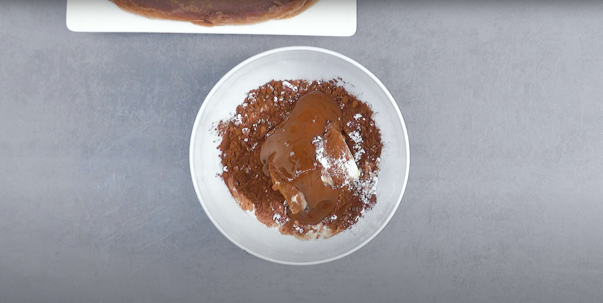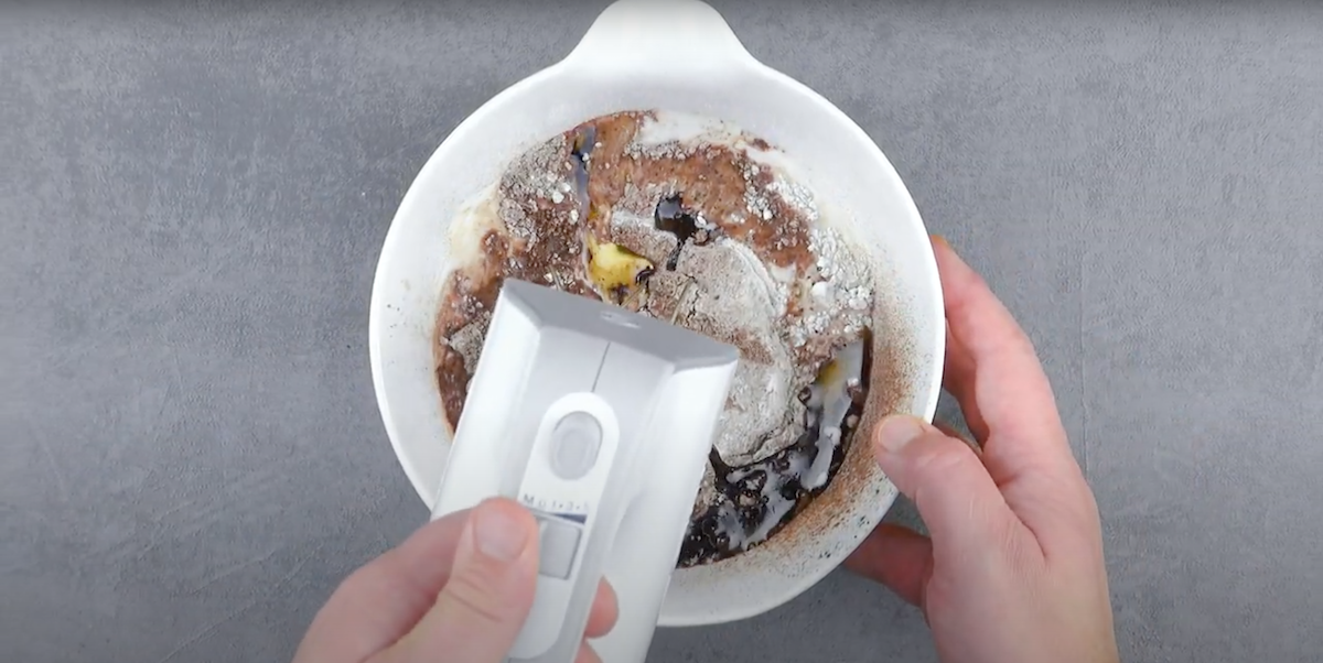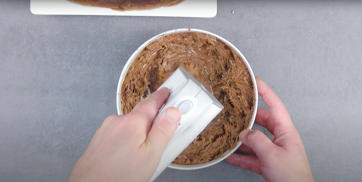 4. Vermenge die Zutaten gut miteinander, sodass eine schöne Schokoladen-Buttercreme entsteht.