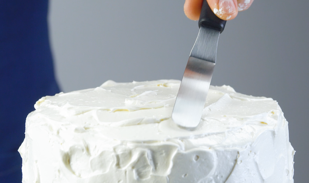 7. Lege den „Deckel“ wieder auf den Kuchen und kleide ihn ringsherum komplett mit der Ganache ein.