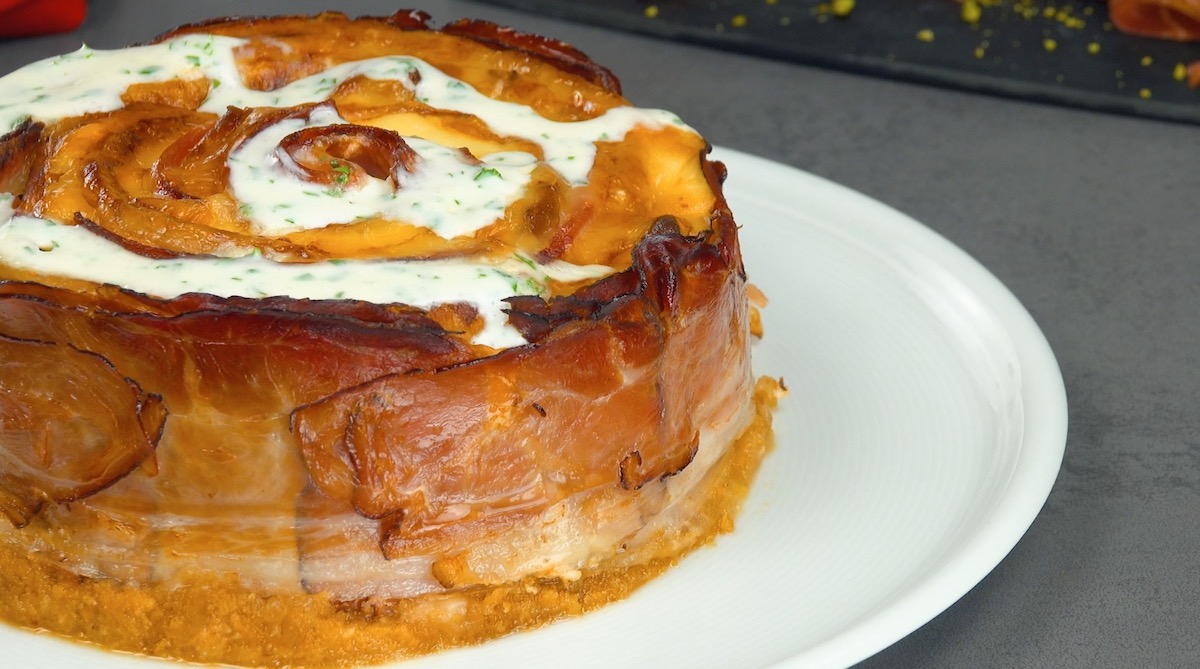 Wer hätte gedacht, dass Schweinerücken, Schinken und Käse zusammen einen so köstlichen Kuchen ergeben? Das ist wirklich ein Rezept, das wahren Fleischliebhabern das Wasser im Mund zusammenlaufen lässt. Wir wünschen bereits im Voraus guten Appetit! Noch mehr Lust auf Fleischgiganten? Dann sieh dir auch dieses riesige Cordon bleu an.