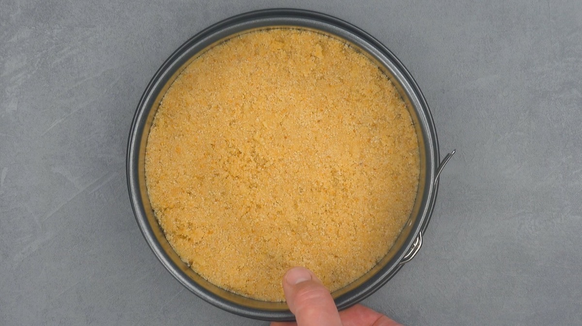 So geht es: 1. Vermische die Zutaten für den Kuchenboden und bedecke damit den Boden der Springform; drücke die Masse etwas an. Stelle die Springform dann für 20 Minuten in den Kühlschrank.