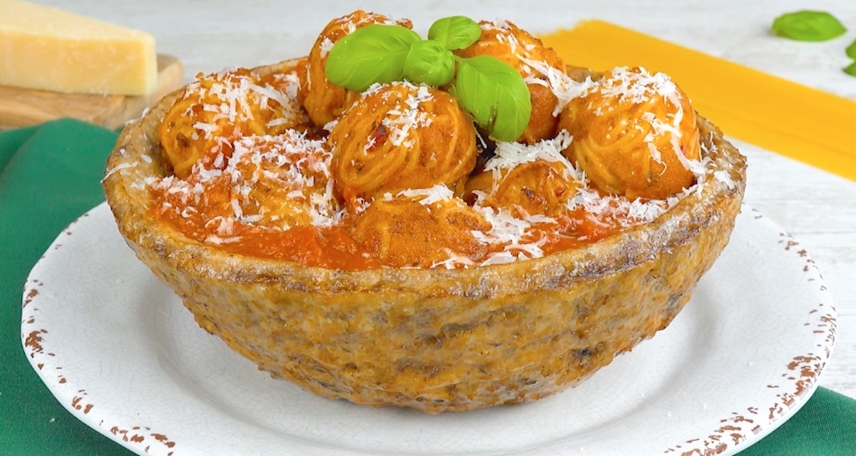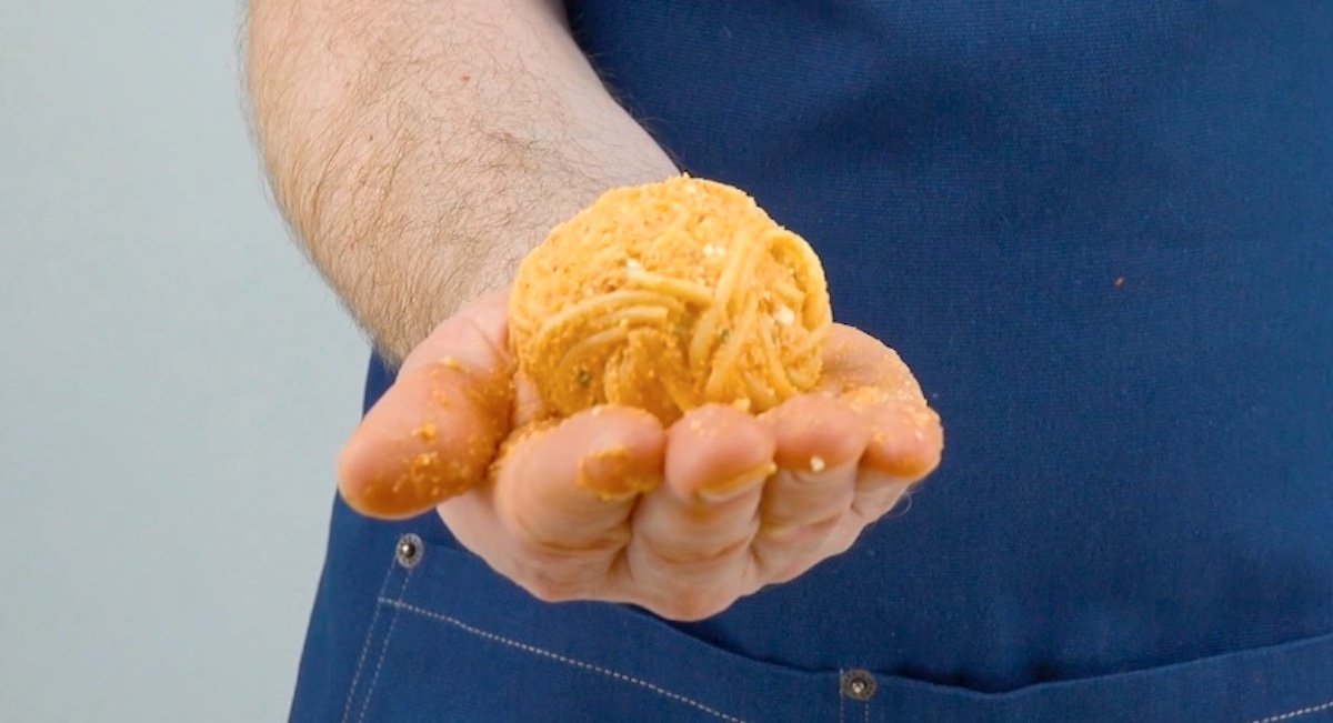 Ein Nudelgericht, bei dem die Schale gleich mitgegessen werden kann – diese frittierten Spaghetti-Bällchen aus der Hackfleisch-Schale muss jeder Pasta-Liebhaber mal probiert haben.