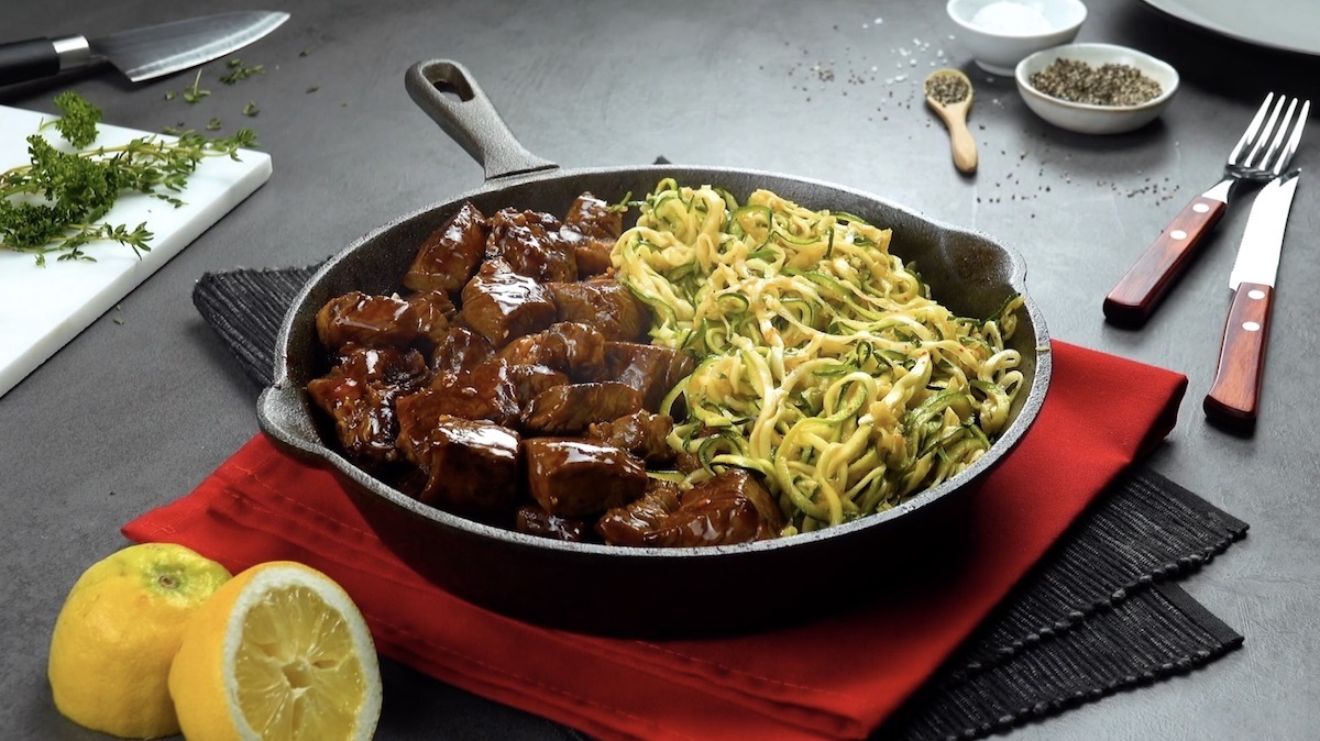 Hättest du gedacht, dass sich Fleisch so einfach, aber außergewöhnlich zubereiten lässt? Egal ob als Häppchen zum Aufspießen, zur köstlichen Rolle geformt oder in einer würzigen Pfanne geschmort und mit Kartoffeln oder Zoodles als Beilage – diese drei Rezepte wecken garantiert den Feinschmecker in dir.