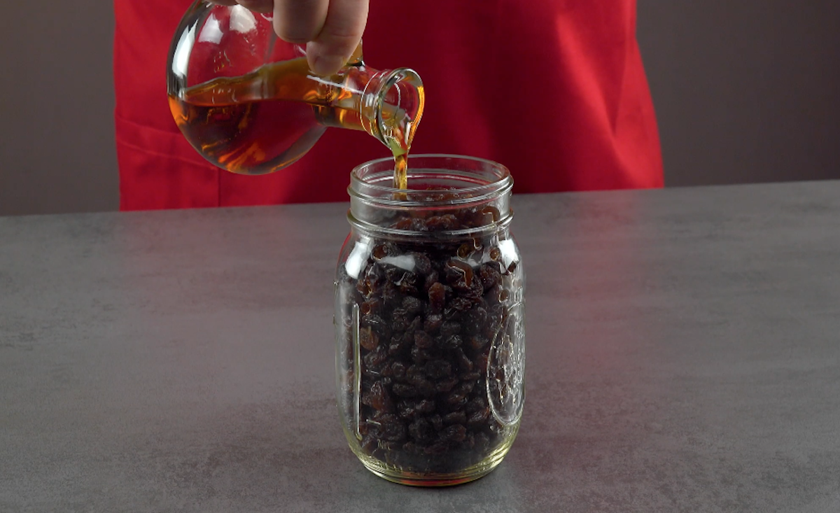 1.) Wasche zunächst die Rosinen, tropfe sie ab und lege sie in einem verschließbaren Behälter in Rum ein. Lasse die Rosinen mindestens 24 Stunden durchziehen. Der Rum sollte komplett aufgesogen sein. Schüttele den Behälter gelegentlich.
