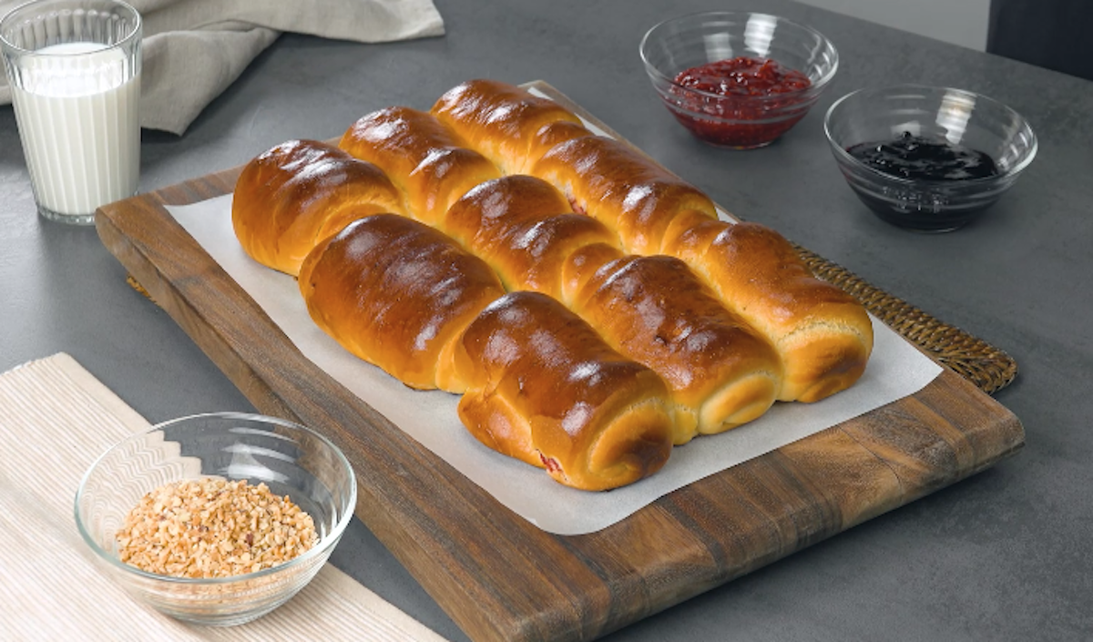 Jeder hat sie schon einmal im Supermarkt gekauft: Milchbrötchen. Doch sie sind meist in viel Plastik eingepackt und es gibt keine unterschiedlichen Geschmacksrichtungen. Deswegen haben wir selbst welche gemacht. Und zwar mit Marmeladen- und Nussfüllung. Diese Milchbrötchen sind perfekt für den süßen Snack zwischendurch, für das süße Frühstück oder für die Pause in der Schule.