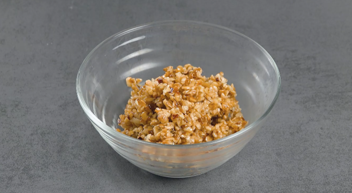 2. Bereite nun die Marmelade zu. Bringe Heidelbeeren und Himbeeren jeweils mit Gelierzucker und Zitronensaft zum Kochen. Hacke für die Nussfüllung Haselnüsse klein und erhitze sie ebenfalls mit Zucker, Wasser und Zimt in einem Topf. Wenn die gehackten Nüsse karamellisiert sind, kannst du sie in eine Schüssel geben.