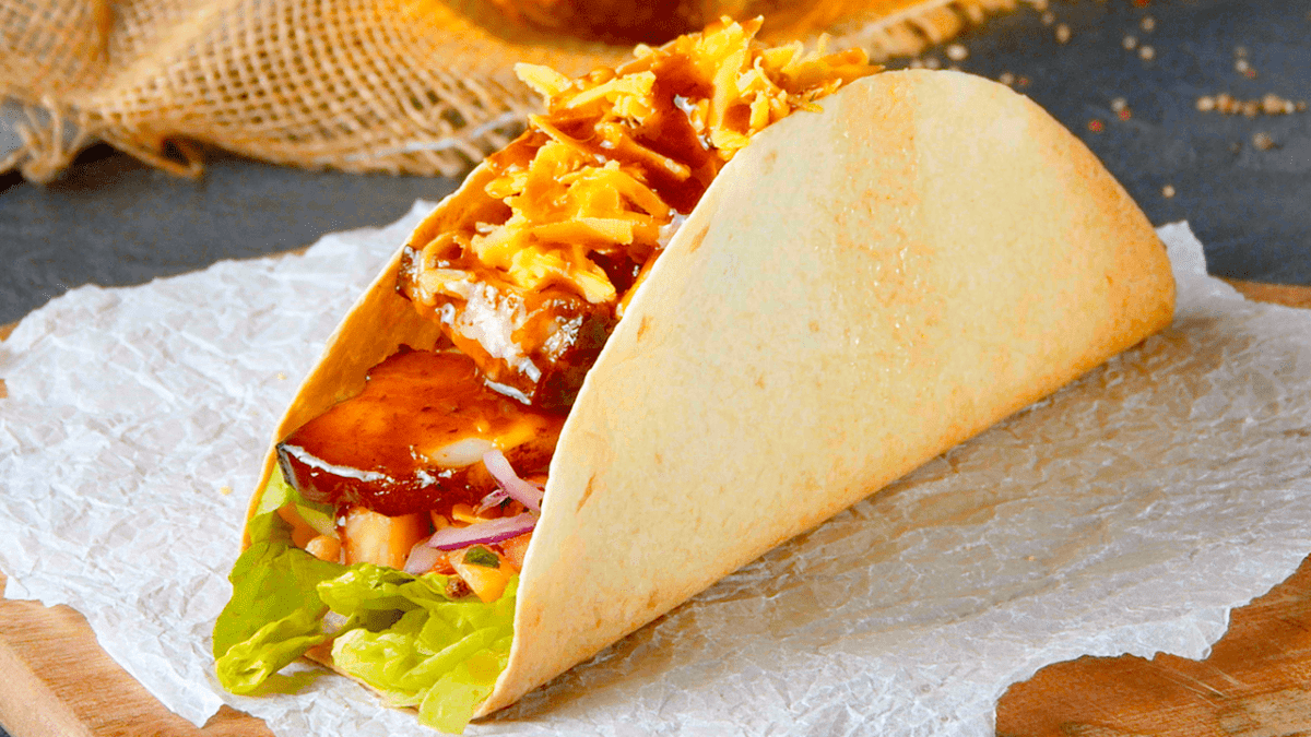 7. Schneide nun den Schweinebauch sowie den Salat in kleine Stücke und fülle anschließend die Tortillas mit Fleischstückchen, Salat, Ananas-Salsa und geriebenem Cheddar. Garniere die Tacos vor dem Servieren mit würziger Cherry-Cola-Marinade.