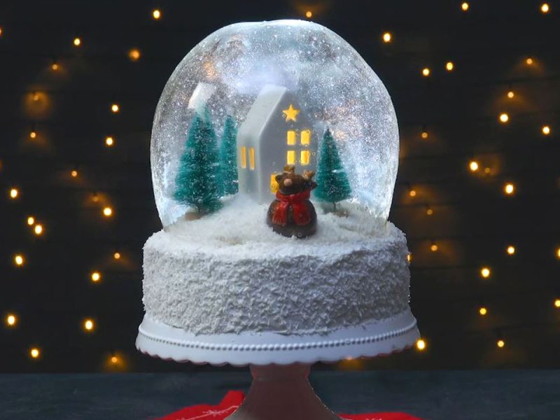 Essbare XXL Schneekugel als Kuchen verzückt Groß und Klein