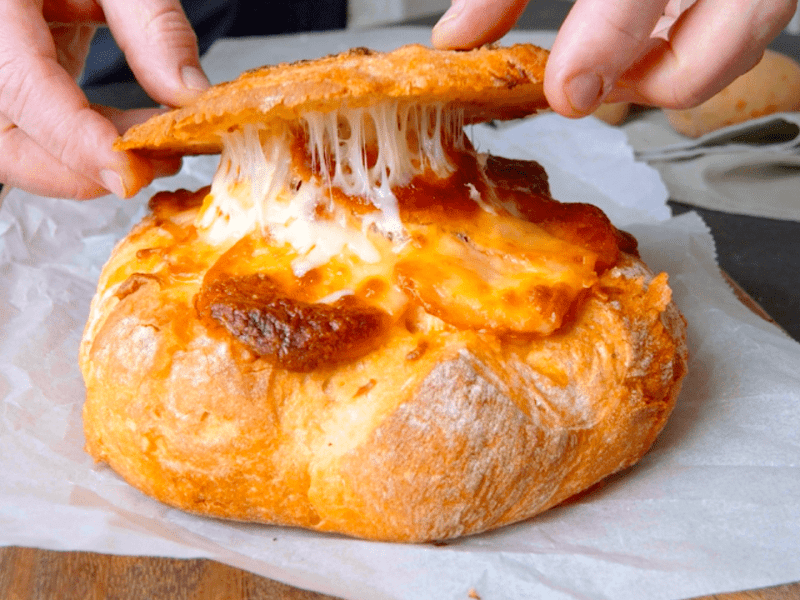Gefülltes Brot mit Hähnchen, Kartoffeln und Spinat