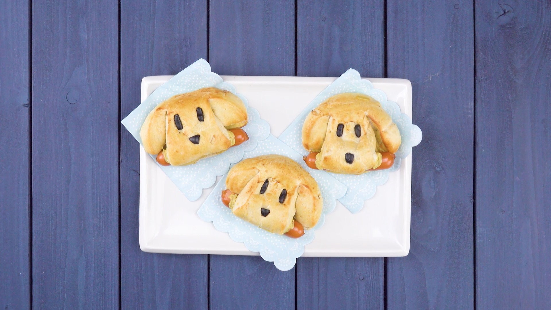 - Bestreiche die Hundegesichter mit Eigelb und backe sie 12 Minuten lang bei 230 °C Umluft.
