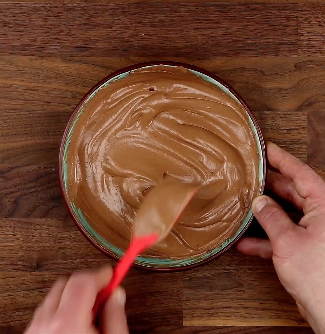 Derweil mischst du Schokolade und Schlagsahne zu einer leckeren Creme. Stelle ein bisschen der Schokolade beiseite. Sie kommt gleich zum Einsatz.