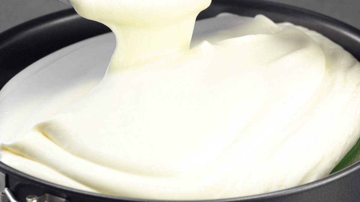 5.) Löse für die Joghurtcreme zunächst Gelatine in warmer Sahne auf. Rühre dann Zucker, Joghurt, Vanillearoma sowie Schlagsahne hinzu. Bedecke den Keksboden nun etwa 2 cm dick mit der Joghurtcreme und stelle das Ganze dann für 15 Minuten in den Kühlschrank.