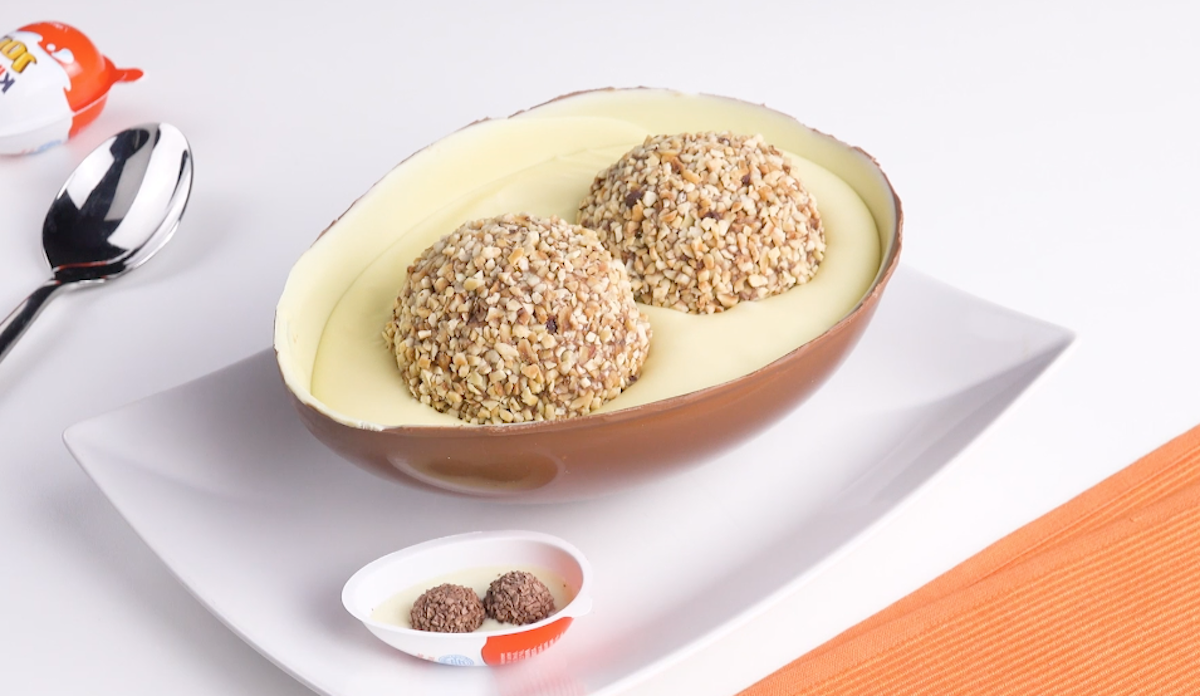 Früher war es das Überraschungsei, das Kinder begierig im Supermarkt angestarrt haben. 2006 hat sich eine ähnliche und ähnlich begehrenswerte Schoko-Spezialität dazu gesellt: „kinder Joy“. Dem Geniestreich aus Schoko, Milchcreme, Nuss-Nougat-Creme und gefülltem Haselnusskonfekt kann weder Groß noch Klein widerstehen. Mit diesem Rezept kannst du das schmackhafte Ei selbst machen – und es ist so groß, dass du gleich alle Schoko-Haselnuss-Fans um dich herum versorgen kannst. Hier kommst du zum Rezept.