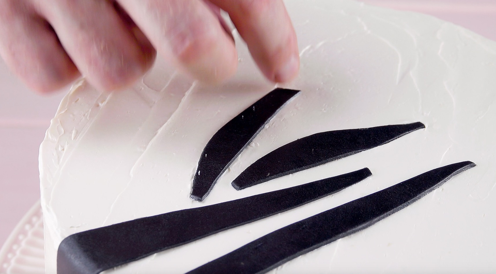 6.) Rolle nun den Fondant auf deiner Arbeitsfläche aus und schneide ihn in spitz zulaufende Streifen. Setze diese Streifen leicht versetzt nebeneinander auf den Rand und die Oberseite der Torte.